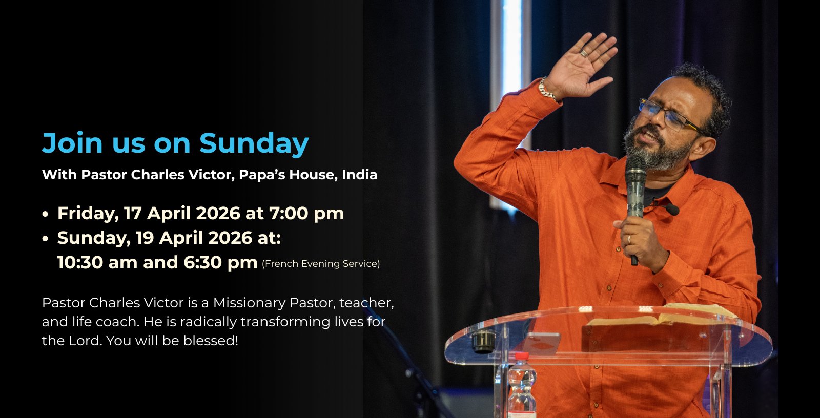 Services are conducted in English with simultaneous translation in Spanish and French and the Sunday Evening Service is conducted in French